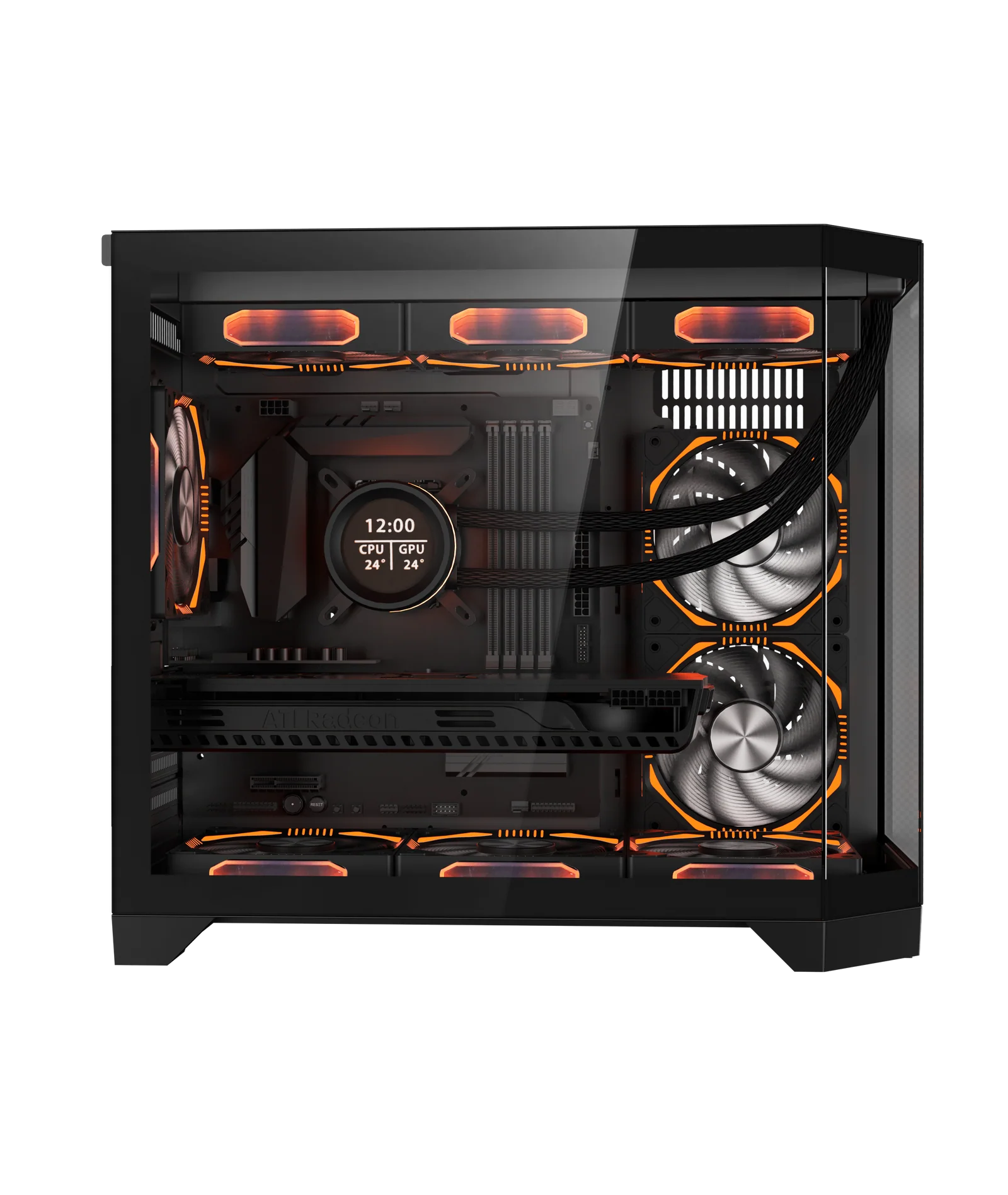 - Tempered glass side panel for a premium showcase look